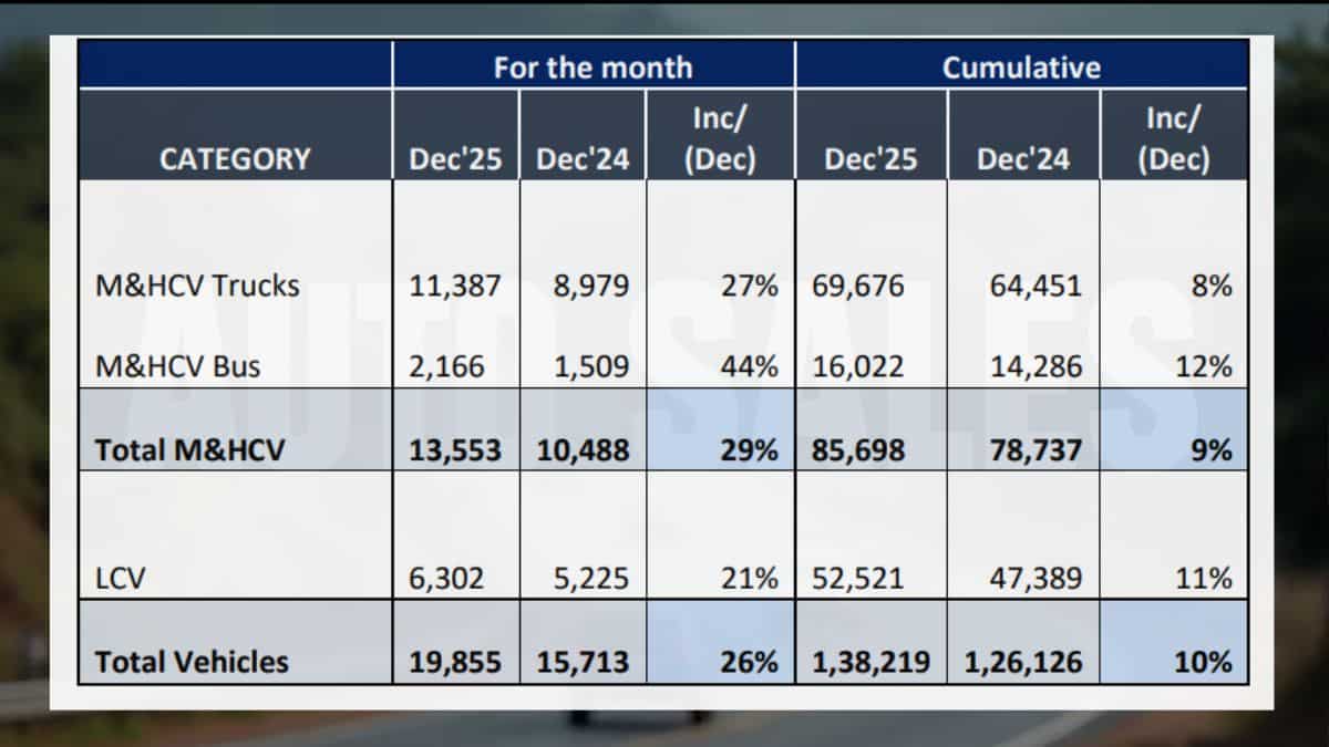 According to Zee Business research, Ashok Leyland is estimated to log total sales of 19,600 sales in December, up 16 per cent over the 16,957 units sold a year ago.