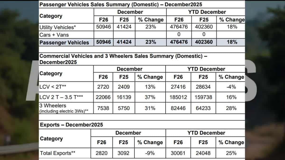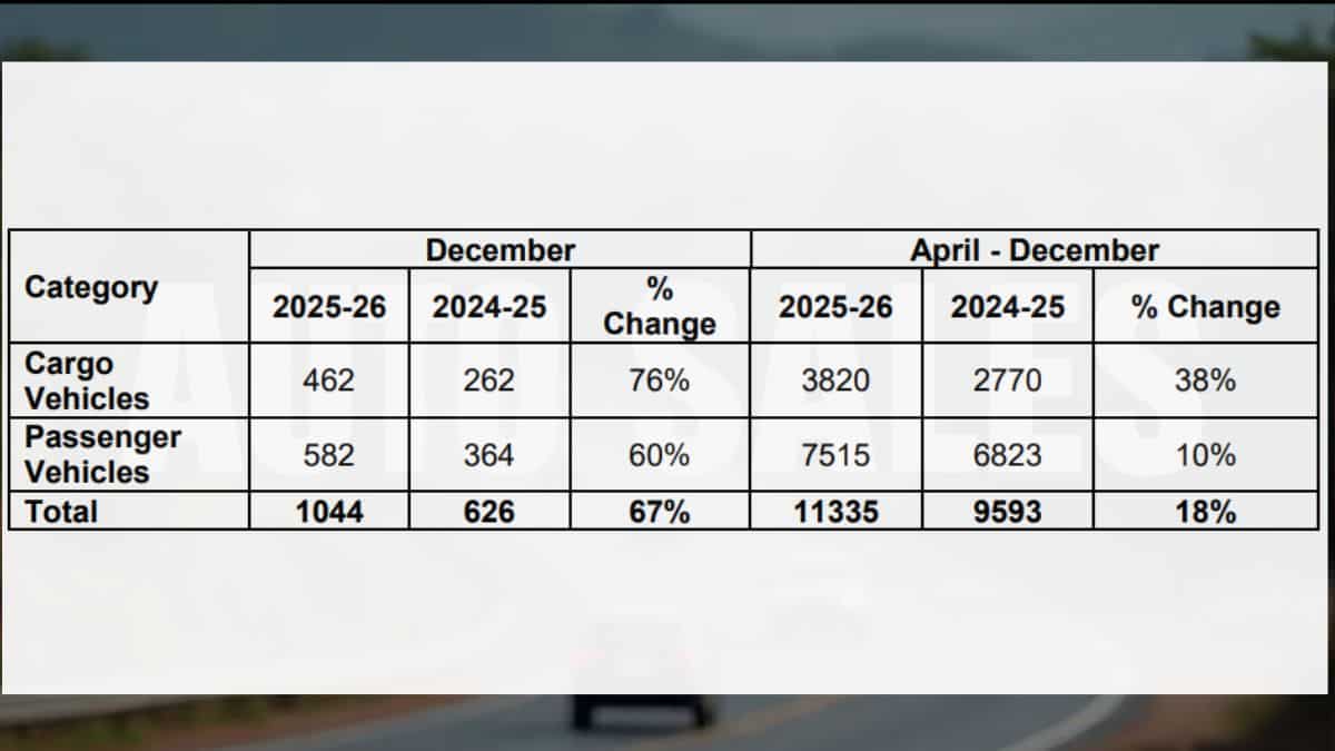 Out of those, passenger vehicle sales are at 1,78,646, up 37.3 per cent over the 1,30,117 units sold in December 2024.