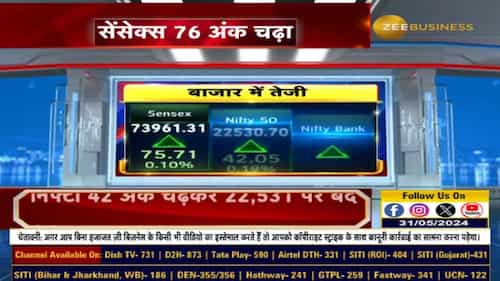 Sensex 76 अंक चढ़कर 73,961 पर बंद, जानिए आज के बाजार का हाल इस वीडियो में