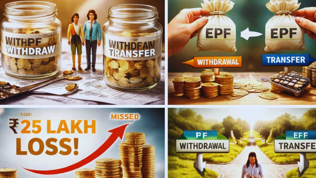 नौकरी बदलते टाइम EPF निकालना अच्छा लग सकता है, लेकिन यह आपके रिटायरमेंट फंड पर बड़ा असर डाल सकता है.लेकिन 8.25% ब्याज पर कंपाउंडिंग से छोटी रकम भी लाखों में बदल सकती है.तो जानें PF विड्रॉल और ट्रांसफर के बीच सही फैसला क्या होना चाहिए.