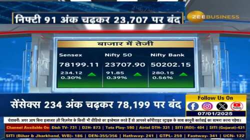 कल बाजार बुरी तरह गिरने के बाद आज सुबह से ही हरे निशान में कारोबार करता रहा, निफ्टी 91 अंक चढ़कर 23 हजार 707 के पास बंद हुआ, तो सेंसेक्स 234 अंक चढ़कर 78 हजार 199 के पास बंद हुआ, वहीं निफ्टी बैंक 280 अंक चढ़कर 50 हजार 202