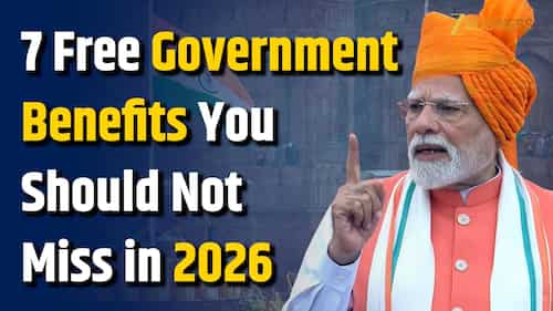 India Government Schemes 2026 include Ayushman Bharat health cover up to ₹5 lakh, PMAY subsidy up to ₹2.67 lakh, Mudra loan up to ₹10 lakh, Sukanya Samriddhi, NSP scholarships, Ujjwala and PM Kisan benefits. Due to low awareness, many eligible citizens fail to claim these schemes. This video explains key