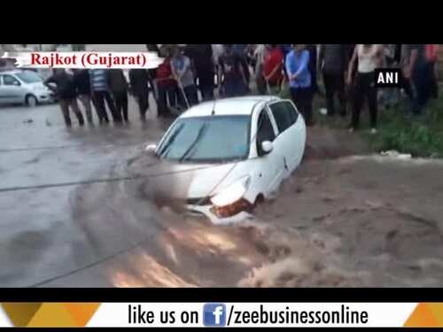 Car gets stuck after heavy rains cripple Rajkot