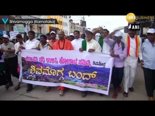 Locals staged protest in Shivamogga against state government's plan to draw water from Sharavathy River to Bengaluru. Protestors shouted slogans against the state government too. Large number of youth participated in the protest. District administration declared holidays for school children, private bus, taxi and auto services stopped due to protest.