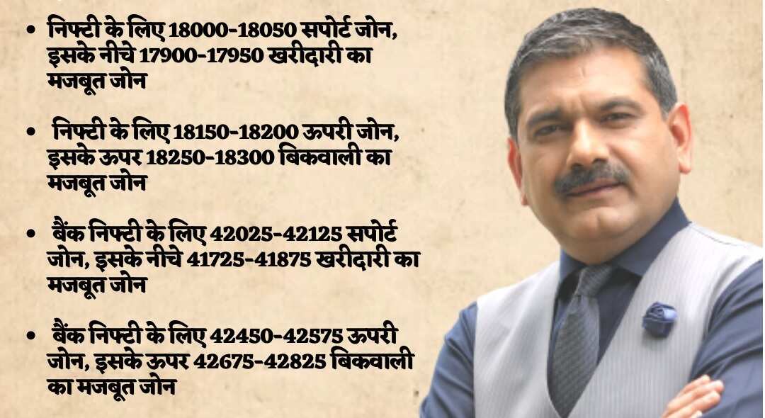 Zee Business Managing Editor Anil Singhvi expects the Nifty50 benchmark to find support at 18,000-18,050, below which, he sees a strong buy zone for the index in the 17,900-17,950 band. For the Nifty50, Anil Singhvi expects resitance to come in at 18,150-18,200, above which, he sees a strong sell zone at 18,250-18,300 levels.