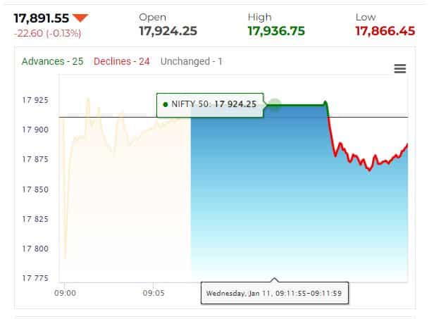 The Nifty50 benchmark is placed at 17,887.7 in late morning deals, down 26.5 points or 0.2 per cent from its previous close.