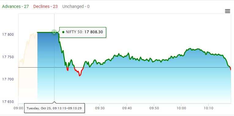In the 50-share Nifty50, 18 stocks advance while the remaining 32 declined.