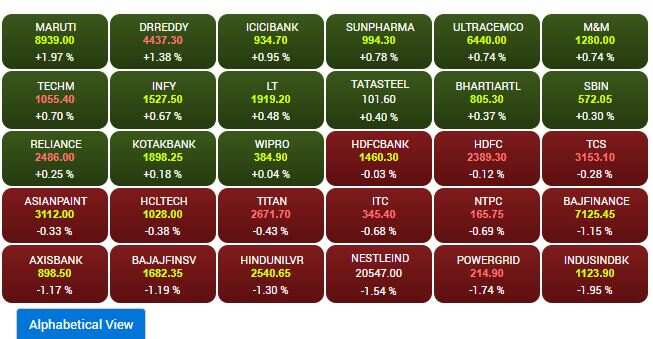 In the 30-stock BSE Sensex, 11 ended in the green while 19 in the red. The top gainers were Tech Mahindra, Larsen & Toubro, Maruti Suzuki, Dr Reddy's Laboratories and State Bank of India (SBI). The top losers were Nestle India, Hindustan Unilever, Bajaj Finserv, Kotak Mahindra Bank and HDFC.
