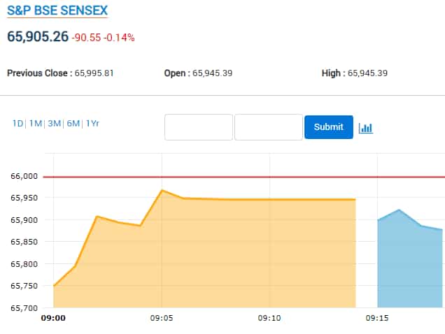 Sensex drops nearly 100 points to trade at 65,905.26 in opening deals.