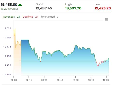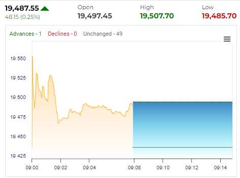 NSE's Nifty trades at 19,487.55, up 0.25 per cent in early morning deals.