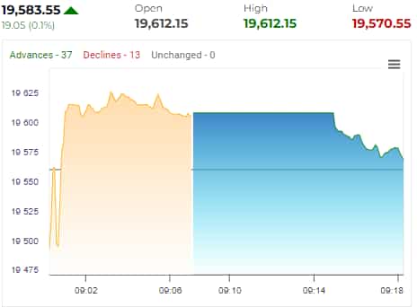 Nifty50 index trades at 19,583.5, up 19.5 points in opening deals.