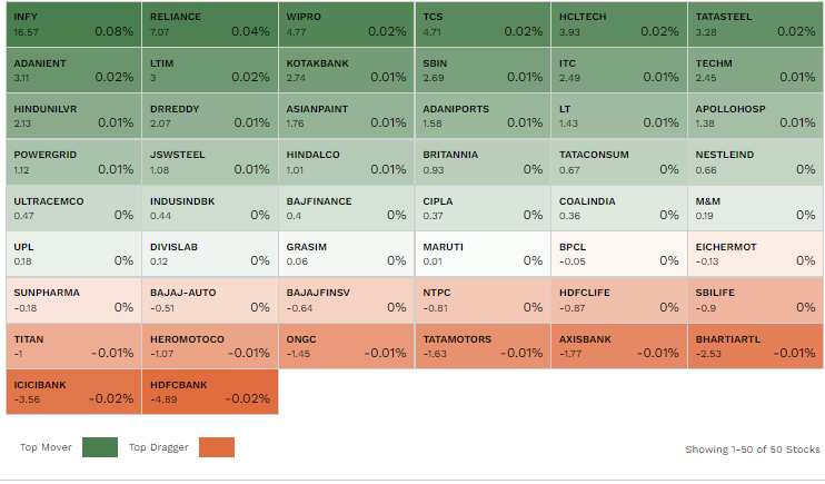 Here's a look at the heatmap in the 50-scrip universe by weight: