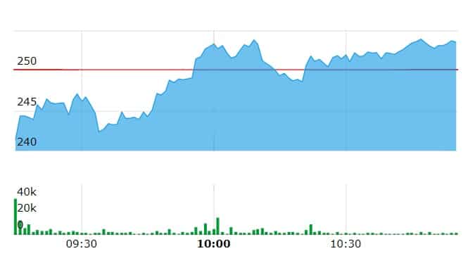 Hindustan Copper (HINDCOPPER) shares gain as much as 1.9 per cent to Rs 255 apiece after the state-run copper producer staged a mixed performance for the fiscal third quarter.