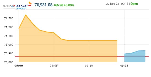 Sensex trades over 50 points higher at 70,931 in opening deals.