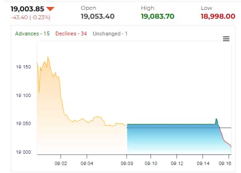 Nifty trades above 19k, down 0.23 per cent in opening deals.