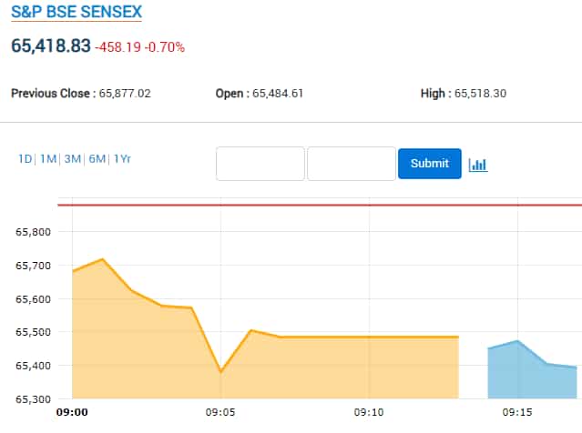 Sensex falls over 450 points amid broad-based selling in opening deals.