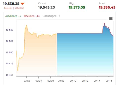 Nifty slides below 19,550, down 0.68 per cent in opening deals.