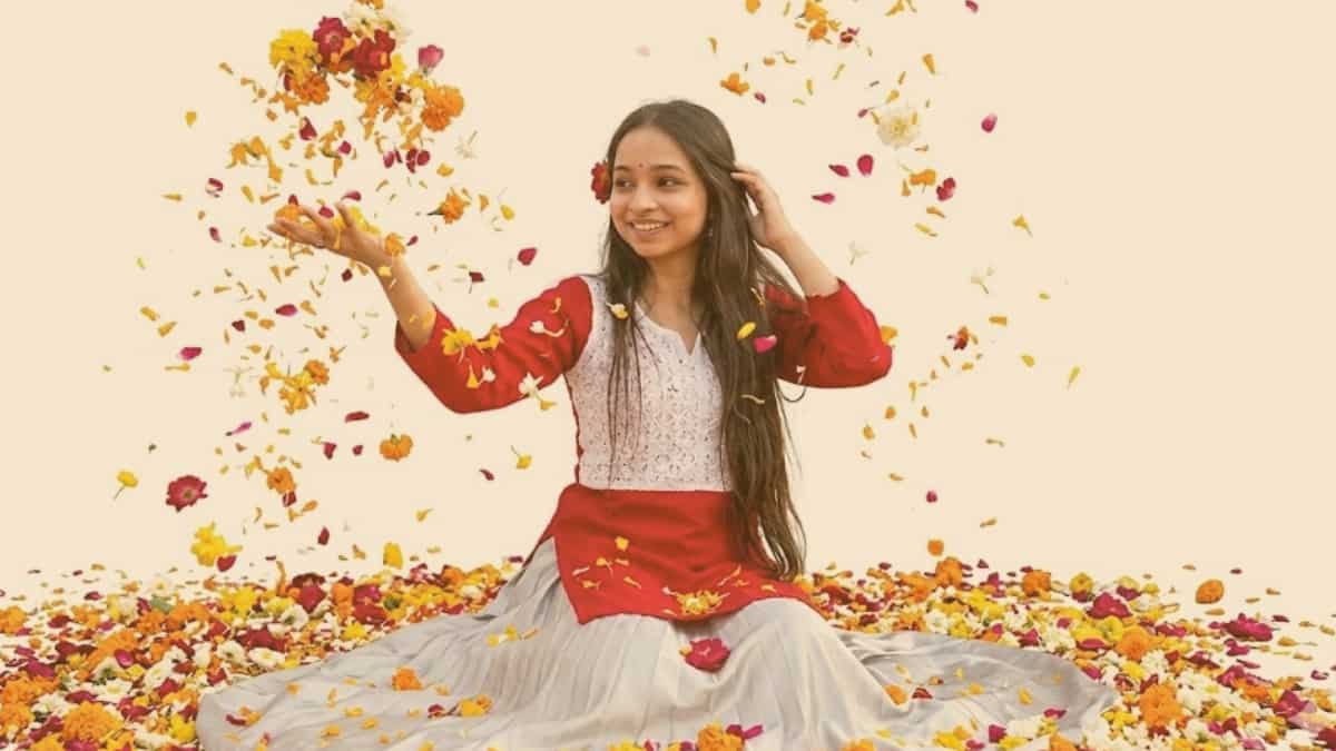 1/10Prompt: "Create an image on a pastel background with colorful flowers spread all over the scene. The character should exactly match the face and pose from the provided reference image. The character is having fun playing 'Phoolon Ki Holi' by throwing petals into the air."