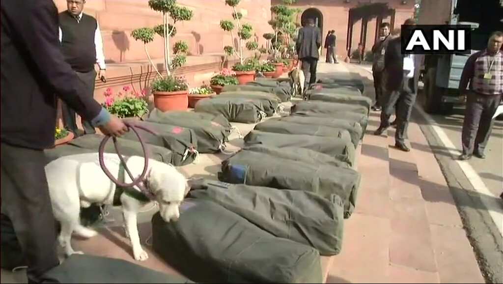 Copies of Union Budget 2018 being checked by security inside Parliament premises.